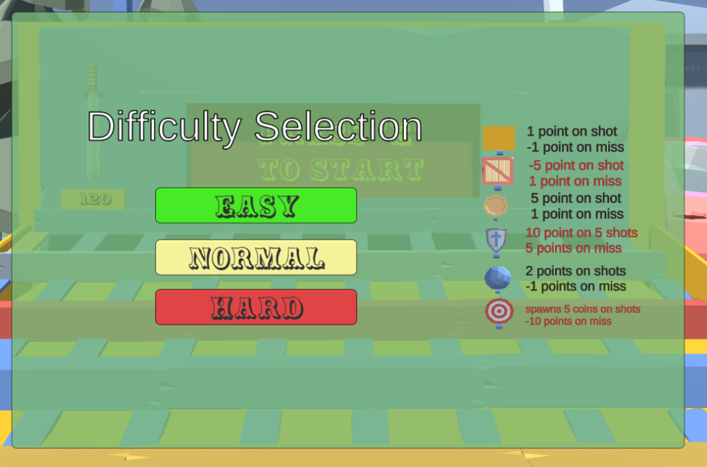 Emulador de juego de feria. El jugador debe alcanzar una determinada cantidad de puntos disparando a una serie de objetivos durante un tiempo determinado.