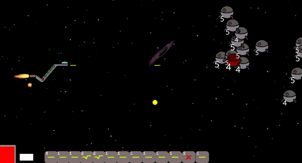 Space side-shooter. El jugador comanda una nave espacial. Los enemigos tienen una vida representada por un número. El jugador en lugar de disparos convencionales, lanza operaciones matemáticas con el objetivo de reducir la vida de los enemigos a 0.